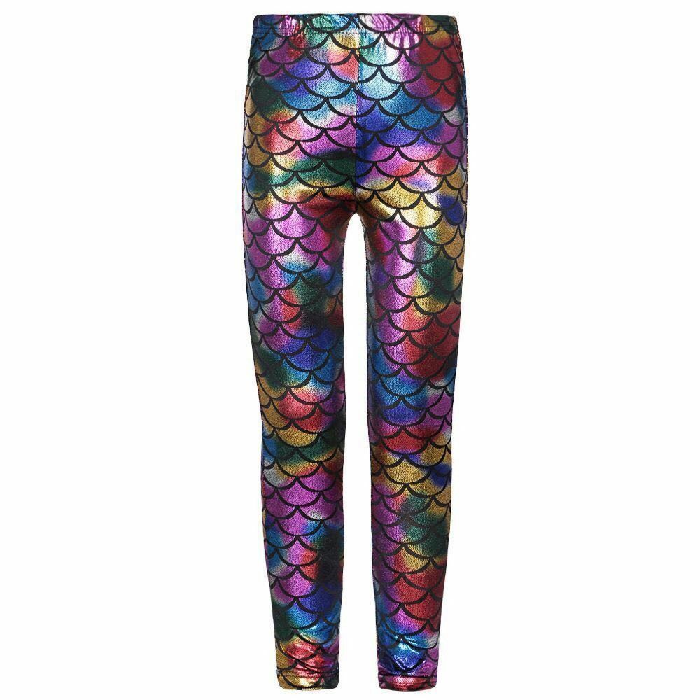 Girls Metallic Mermaid & Star Foil Leggings – Shiny Stretch Dance & Party Pants (Ages 3–13)